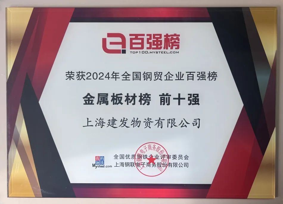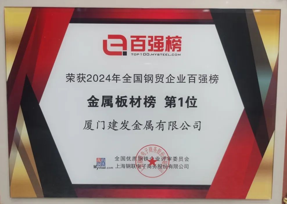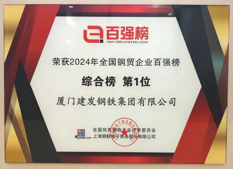蟬聯(lián)第一 | 建發(fā)鋼鐵集團(tuán)榮獲 2024年全國鋼貿(mào)企業(yè)百強(qiáng)榜綜合榜第一位