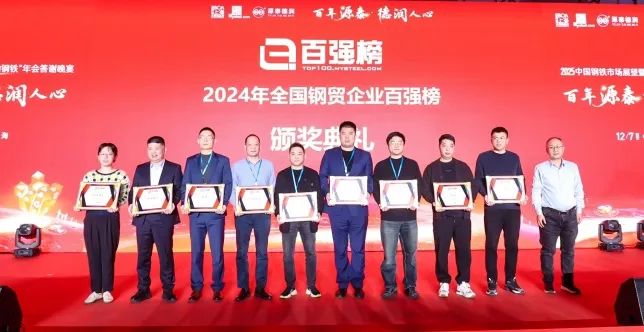 在本屆大會的2025中國大宗商品頒獎慶典上,廈門建發(fā)鋼鐵集團(tuán)有限公司榮獲2024年全國鋼貿(mào)企業(yè)百強(qiáng)榜“綜合榜第一位”,建發(fā)鋼鐵集團(tuán)旗下廈門建發(fā)金屬有限公司、上海建發(fā)物資有限公司分別獲得“金屬板材榜第一位”、“金屬板材榜十強(qiáng)”,凸顯了建發(fā)鋼鐵集團(tuán)供應(yīng)鏈運(yùn)營綜合實力及行業(yè)地位。
